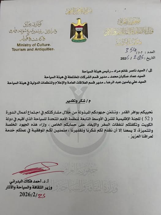 ضمن برنامجها المتواصل لتأهيل الكوادر وتعزيز الأداء المؤسسي، نظّمت هيئة السياحة دورة تدريبية خاصة بالمدراء المفوضين في محافظة كربلاء المقدسة، بعد استحصال موافقة السيد رئيس الهيئة، مستهدفة المدراء المفوضين في محافظات الجنوب. وجرى تنفيذ الدورة بالتوازي في كلٍّ من بغداد وكربلاء، في خطوة تهدف إلى تسهيل مشاركة المتدربين وتقليل أعباء السفر والتنقل، بما يوفّر الوقت والجهد ويعزّز انسيابية المشاركة. وتناولت محاور الدورة تنمية القدرات الإدارية، وتحديث آليات العمل، والارتقاء بمستوى الخدمات السياحية، بما يتلاءم مع متطلبات المرحلة الراهنة وتوجهات تطوير القطاع السياحي في العراق. كما شهدت الدورة مشاركة فاعلة من المدراء المفوضين، فيما قررت الهيئة إعفاء الموظفين المتقاعدين من الرسوم المقررة، تقديراً لعطائهم السابق وإسهاماتهم في خدمة القطاع السياحي، وتكريماً لمسيرتهم المهنية. وتندرج هذه المبادرة ضمن سلسلة برامج تدريبية تعتمدها الهيئة في إطار استراتيجيتها الرامية إلى تعزيز كفاءة الموارد البشرية والنهوض بواقع السياحة في البلاد.